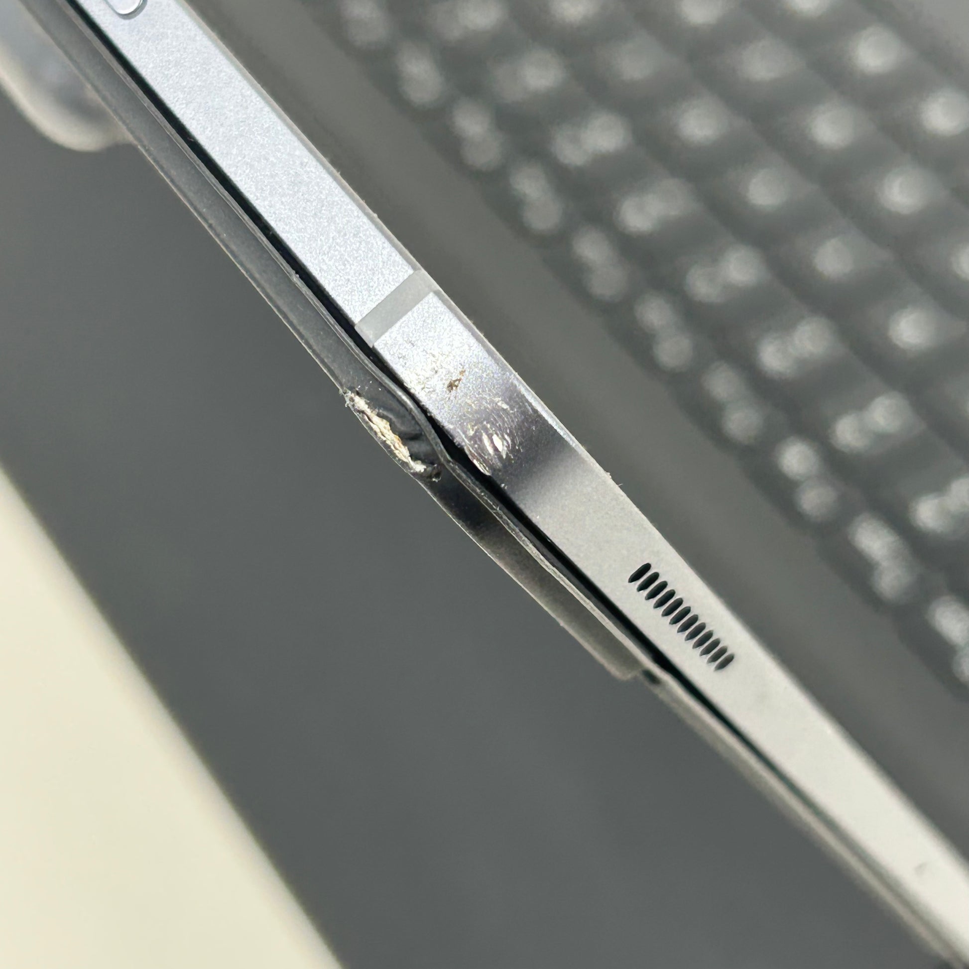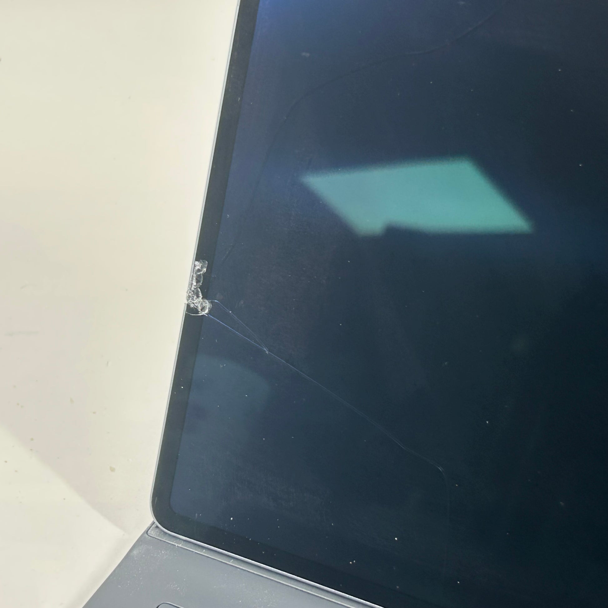 The screen is cracked. It was damaged in shipping but still works fine. The bezel is affected by the crack as well, showing scratches and scuffs. The back is in good cosmetic condition with some minor scuffs, scratches and wear, see photos. Please view our close up photos, as these are taken of the actual item being offered for sale.